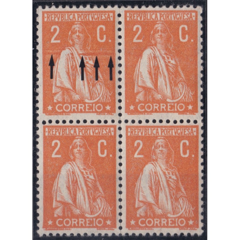 Quadra nº 223 sem charneira em papel liso com defeito de impressão. Exemplar em boas condições.