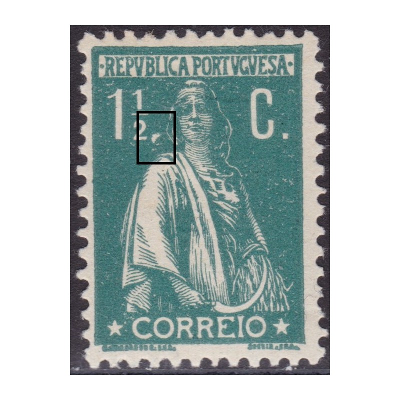 SElo nº 222 com charneira em papel acetinado com variedades de cliché XI. Exemplar em boas condições.