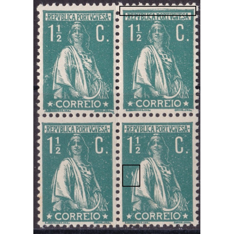 Quadra nº 222 sem charneira em papel acetinado com variedades de cliché não catalogadas. Exemplar em boas condições.