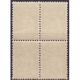 Quadra do selo nº 229 sem goma, papel acetinado e dent. 12x11½, variedade de cliché não catalogada. Exemplar em boas condições.