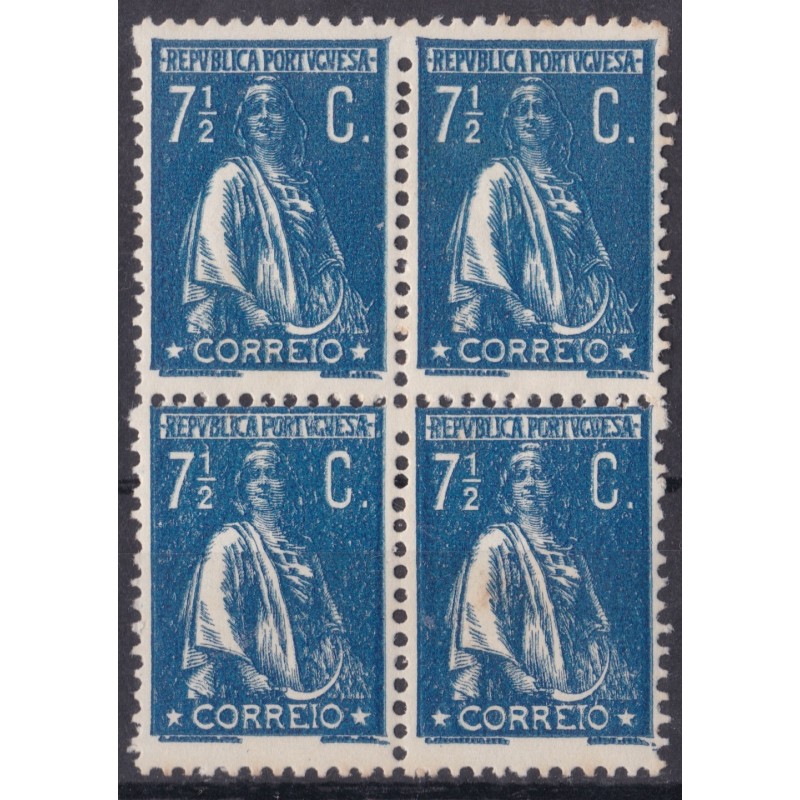 Quadra do selo nº 229 sem goma, papel acetinado e dent. 12x11½. Impressão defeituosa. Exemplar em boas condições.