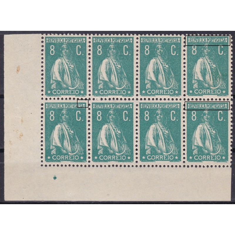 Bloco de 30 selos nº 243 sem charneira e goma original, papel liso denteado 15x14 - variedade de cliché I. Exemplar em boas condições.