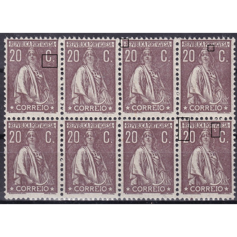 Quadra nº 240 novo sem charneira e goma original, papel liso e denteado 12X11½. Variedades de cliché não catalogadas. Exemplar em boas condições.