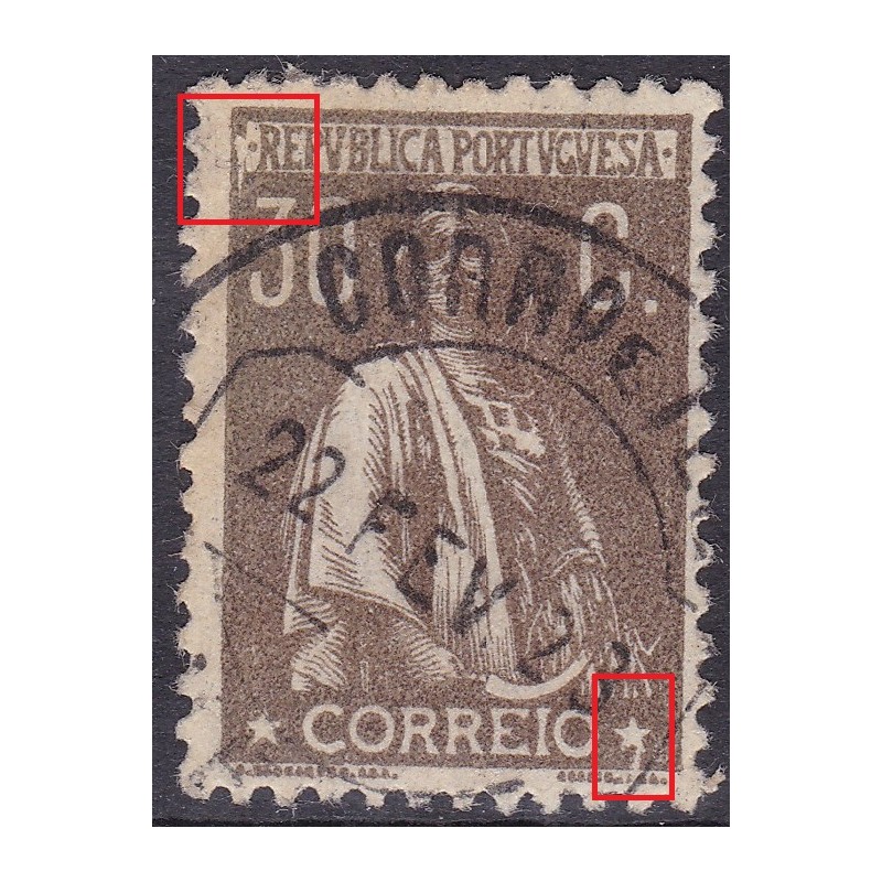 Selo nº 242 usado, papel liso, variedade de cliche XXXIV. Exemplar em boas condições.