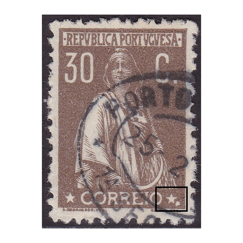 Selo nº 242 castanho sem charneira goma original, papel liso. Variedade de cliché XXXIV. Exemplar em boas condições.
