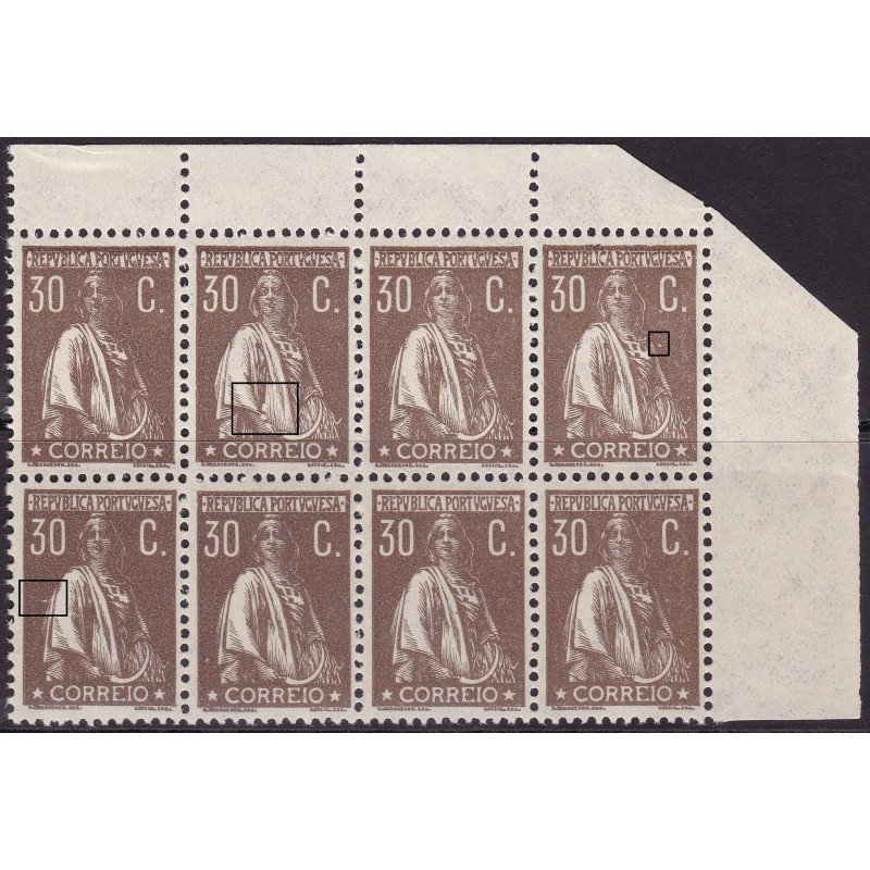 bloco nº 242 castanho sem charneira goma original, papel liso. Variedade de cliché XXI e outra não catalogada. Exemplar em boas condições.