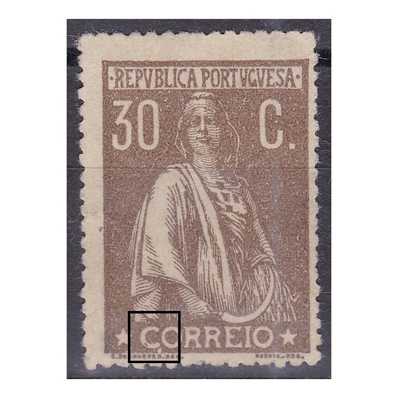 Selo nº 242 castanho amarelo sem goma, papel pontinhado vertical, denteado 15x14. Variedades de cliché XXXVI. Exemplar em boas condições.