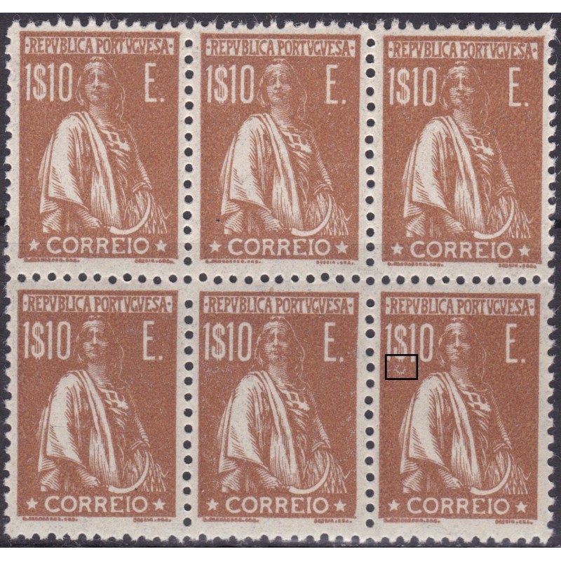 Bloco nº 242 castanho amarelo sem charneira goma original, papel liso e denteado 12x11½. Variedade de cliché XVI. Exemplar em boas condições.
