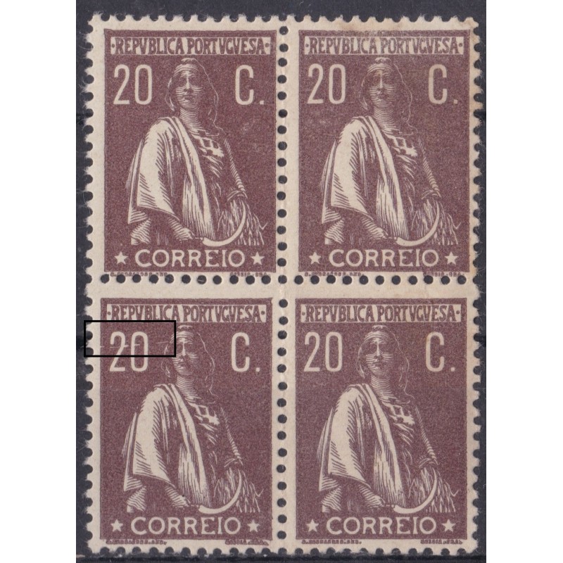 Quadra nº 240 sem charneira em papel liso. Variedades de cliché VIII. Exemplar em boas condições.