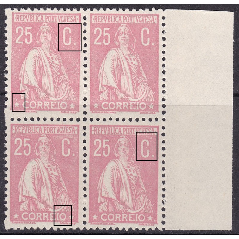 Quadra nº 252 sem charneira, papel liso e denteado 12x11½, variedades de cliché III / VI e outras e outras não catalogadas. Exemplar em boas condições.