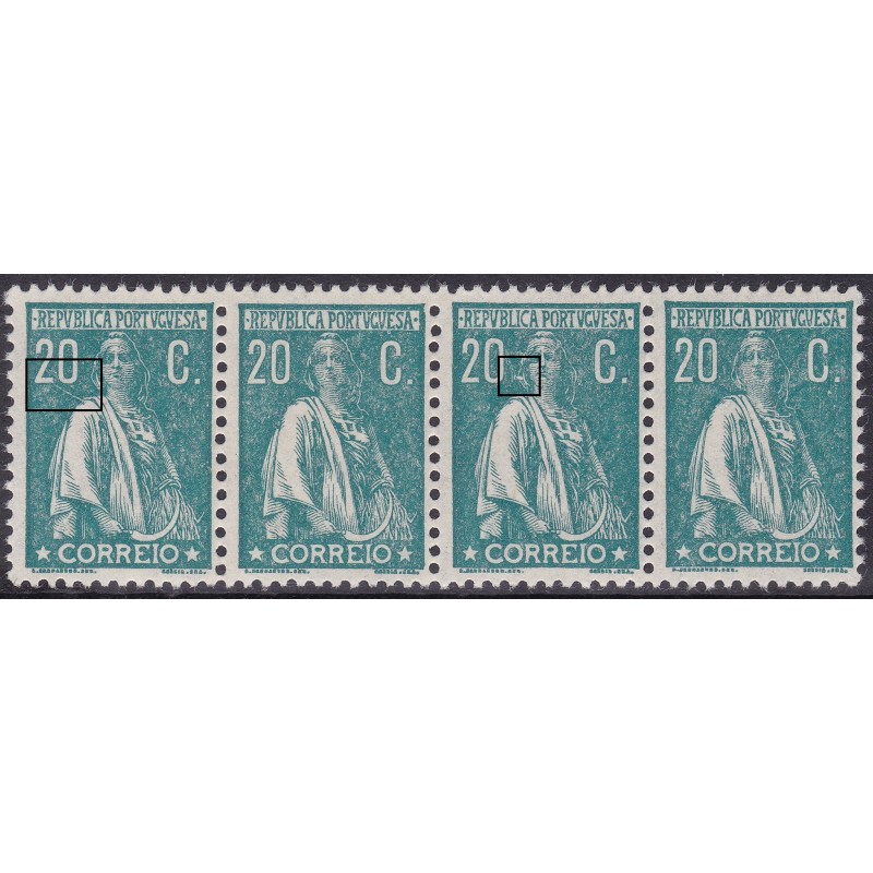 Quadra nº 254 sem charneira com variedades de cliché III. Exemplar em boas condições.