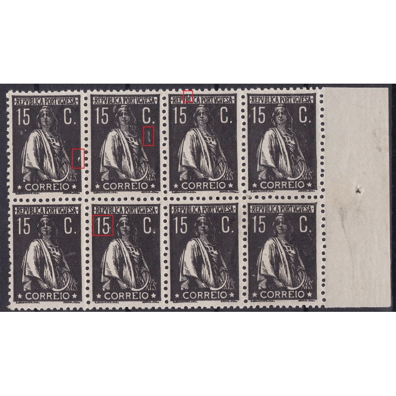 Quadra nº 252 sem charneira, papel liso e denteado 12x11½, variedades de cliché VIII e outras não catalogadas. Exemplar em boas condições.