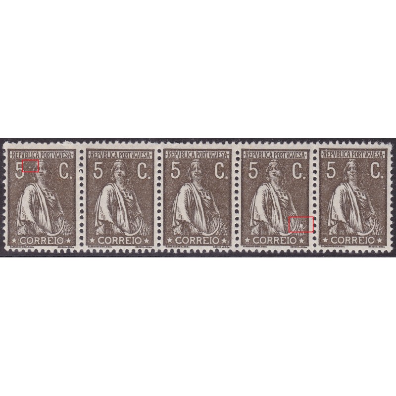 Tira nº 252 sem charneira, papel liso e denteado 12x11½, variedades de cliché não catalogadas. Exemplar em boas condições.