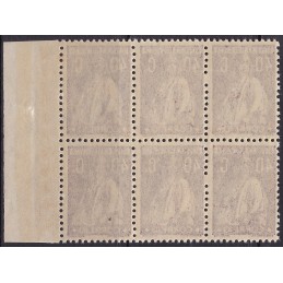 Quadra nº 284 sem charneira com papel pontinhado vertical e impressão defeituosa. Exemplar em boas condições.