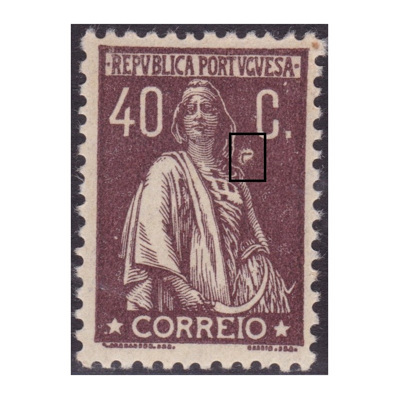 Selo nº 286 com charneira, papel pontinhado vertical com variedade de cliche não catalogada. Exemplar em boas condições.