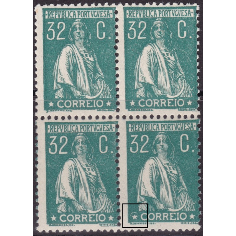 Quadra nº 282 sem charneira em papel pontinhado vertical com variedade de cliché não catalogada. Exemplar em boas condições.