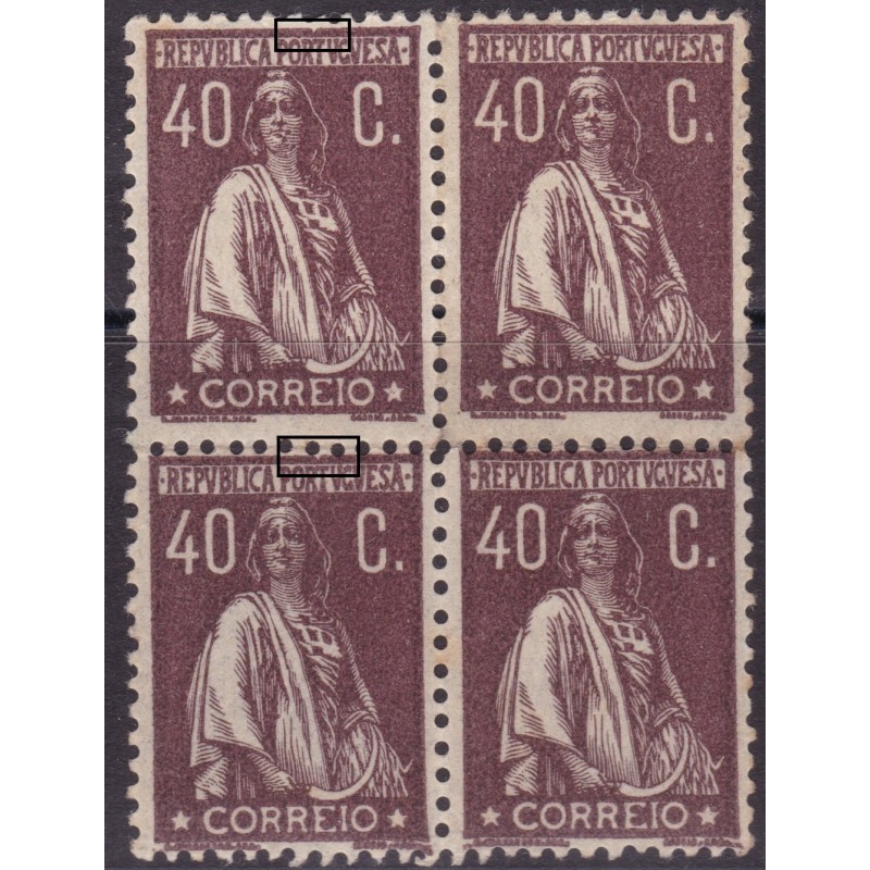 Quadra nº 277 sem charneira, papel pontinhado. Com variedade de cliché não catalogado. Exemplar em boas condições.