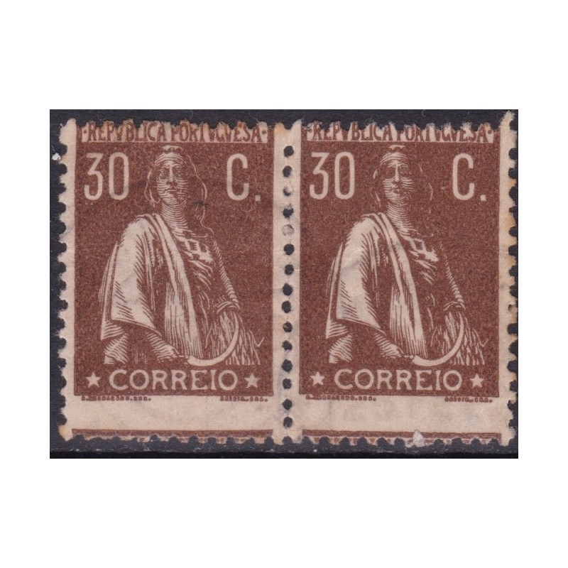 DESCENTRADO - Par nº 281 usado em papel pontinhado vertical e denteado 12x11½. Exemplar em boas condições.