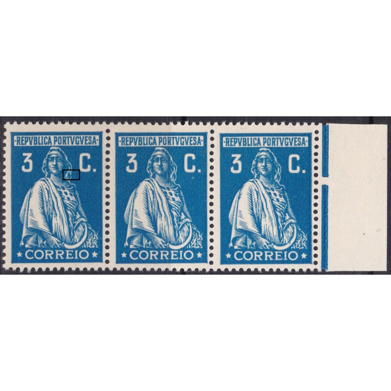 Tira nº 397 sem charneira e goma original. Variedade de cliché não catalogada. Exemplar em boas condições.