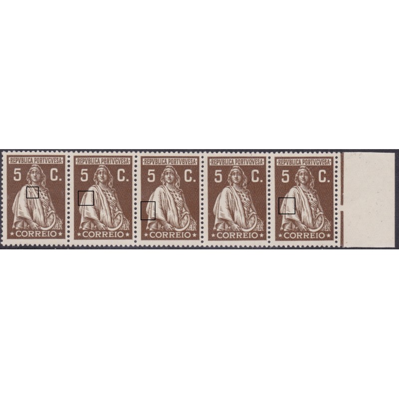 Tira nº 399 sem charneira e goma original com variedades de cliche não catalogadas. Exemplar em boas condições.
