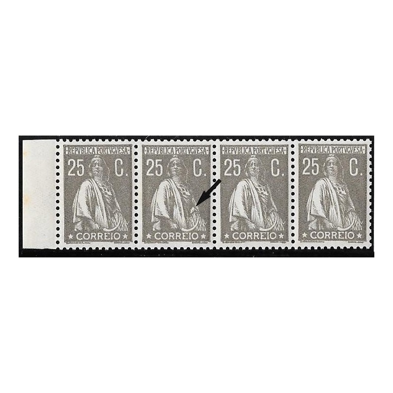 Tira nº 382 sem charneira e goma original, papel liso fino - denteado 12x11½ com variedade de cliché não catalogada. Exemplar em boas condições.