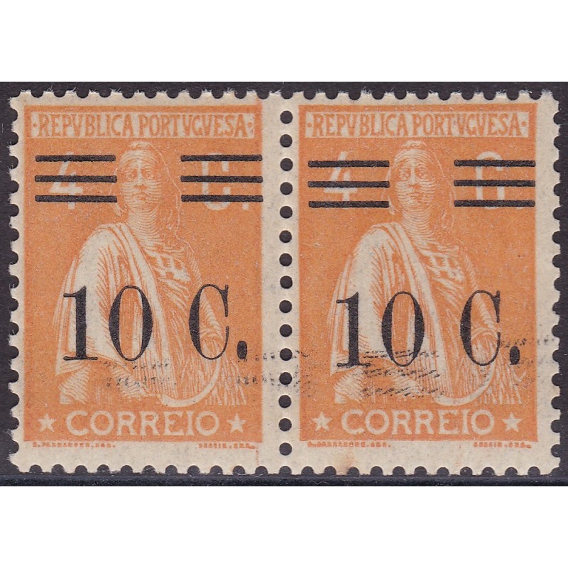 Par com barras tipo VI nº 455 sem charneira e papel liso com variedade de cliche não catalogada. Exemplar em boas condições.