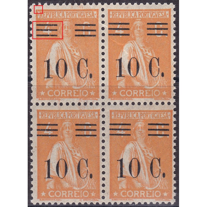 Quadra nº 452 sem charneira, papel liso. Variedade de cliché nº XI. Exemplar em boas condições.