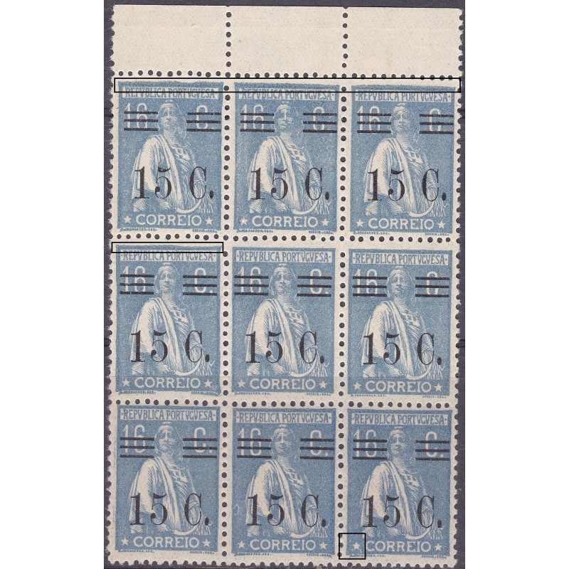 Bloco nº 459 sem charneira, papel pontinhado vertical e variedades de cliché não catalogadas. Exemplar em boas condições.
