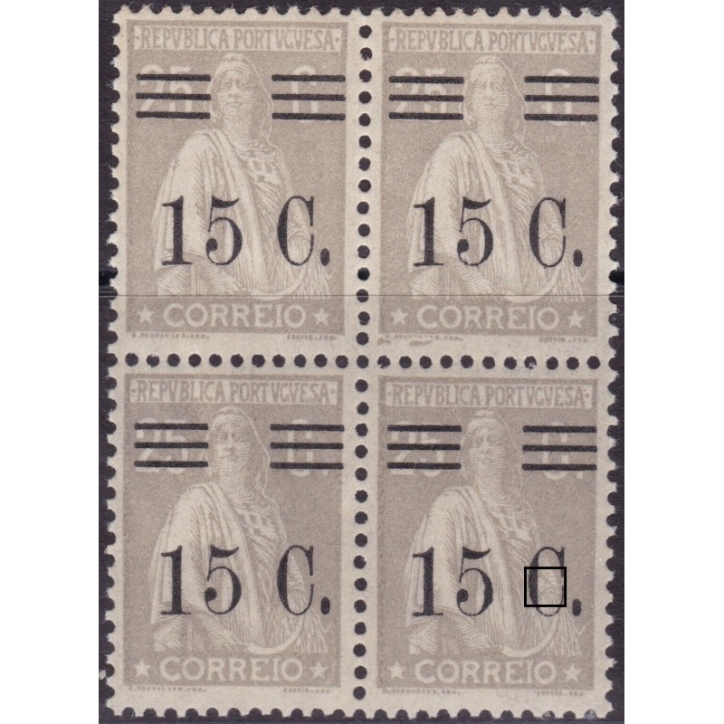 Bloco nº 459 sem charneira, papel pontinhado vertical e variedades de cliché não catalogadas. Exemplar em boas condições.