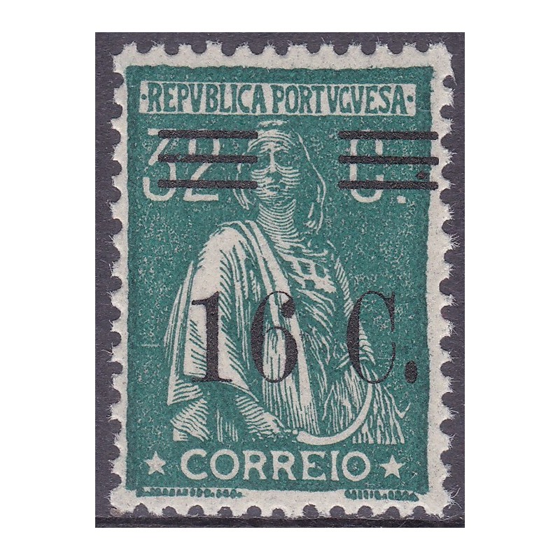 Selo com barras tipo V nº 455 sem charneira e papel liso sobrecarga irregular. Exemplar em boas condições.