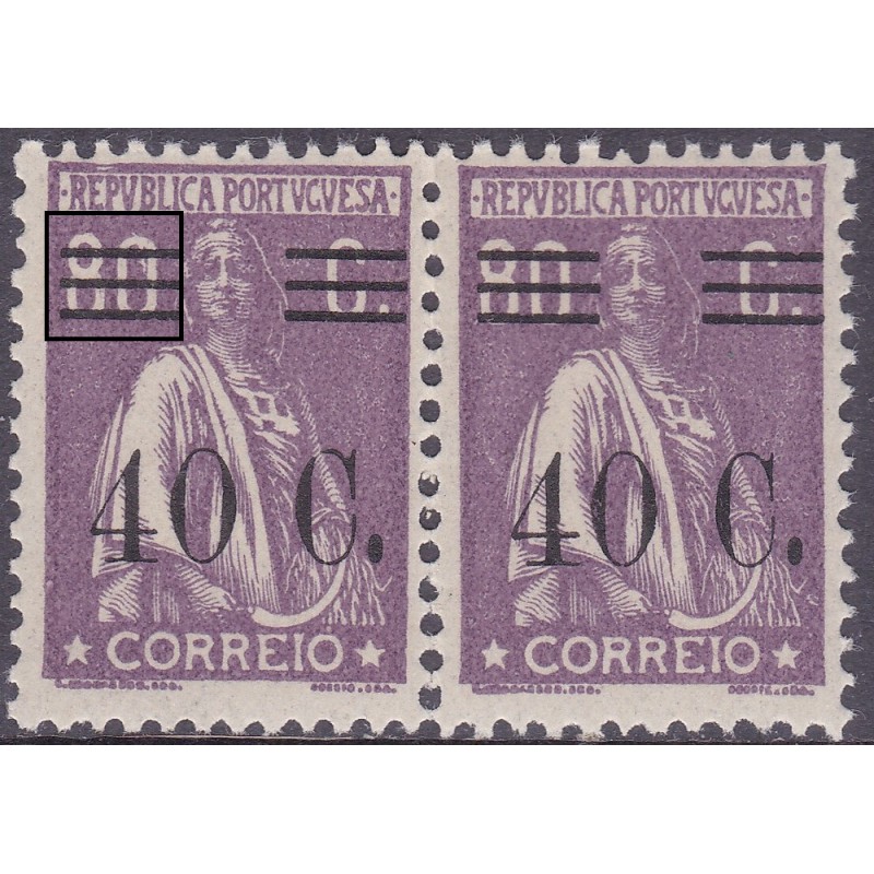 Par nº 457 com charneira em papel liso com base do "1" partido . Exemplar em boas condições.