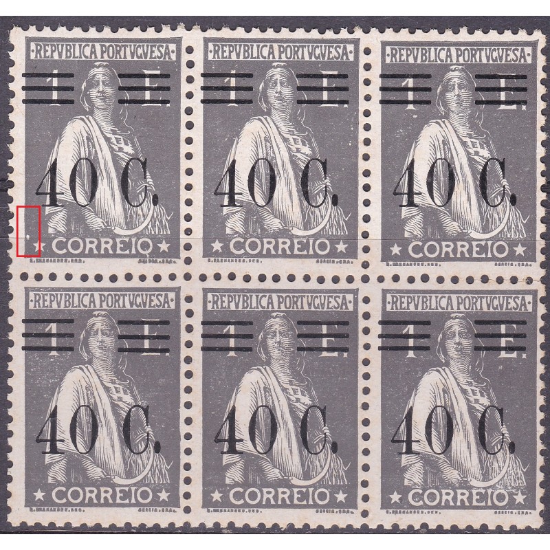 Bloco nº 482 sem charneira, papel lustrado e variedade de cliché não catalogada. Exemplar com manchas amarelas no verso.