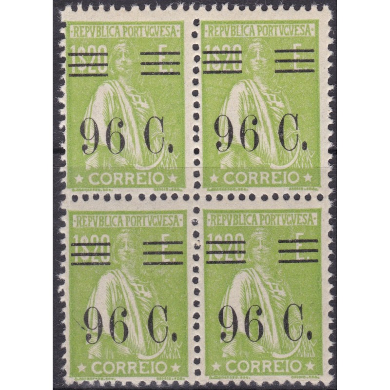 Quadra nº 459 sem charneira, papel liso com sobrecarga descentrada. Exemplar em boas condições.