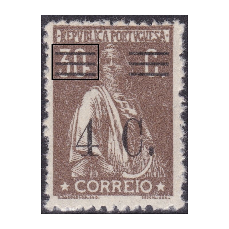 Selo nº 454 com charneira em papel liso. Sobrecarga deslocada. Exemplar em boas condições.
