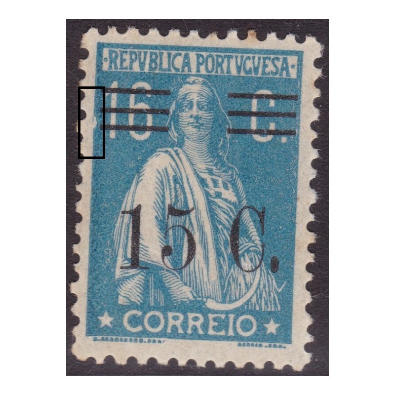 Selo com barras tipo V nº 455 sem charneira e papel liso sobrecarga irregular. Exemplar em boas condições.