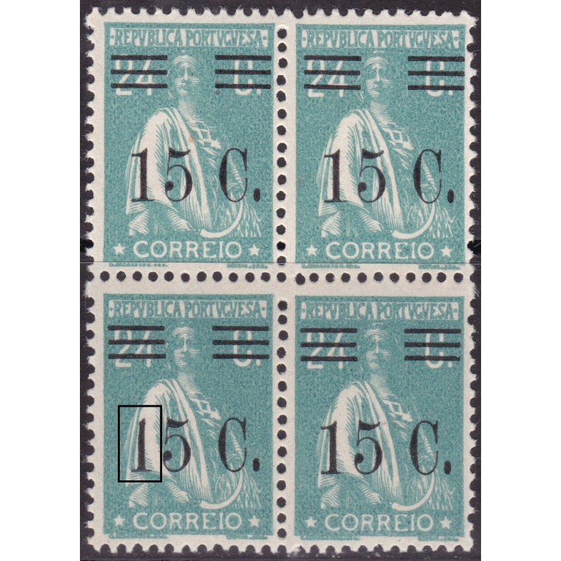 Quadra nº 459 sem charneira, papel liso e variedades de cliché XII. Exemplar em boas condições.