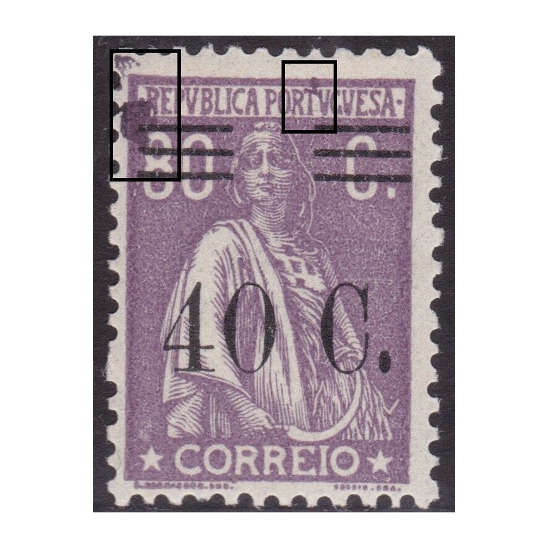 Selo nº 459 novo com charneira, papel liso. Variedade de cliché IV. Exemplar com denteado defeituoso.
