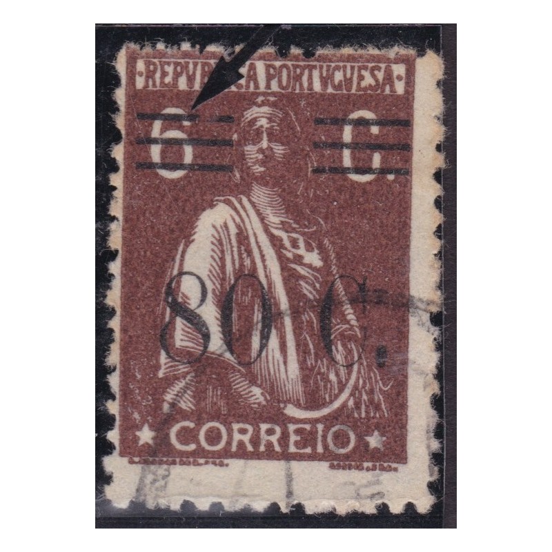Selo nº 454 com charneira em papel liso. Sobrecarga deslocada. Exemplar em boas condições.