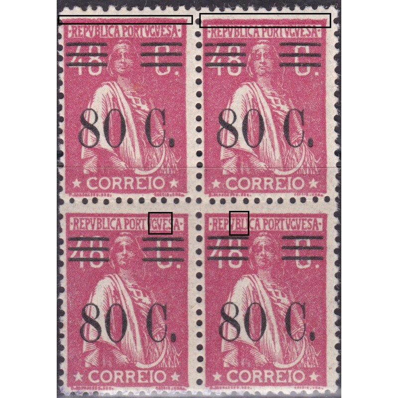 Quadra nº 479 sem charneira em papel liso com variedades e cliche não catalogadas. Exemplar em boas condições.