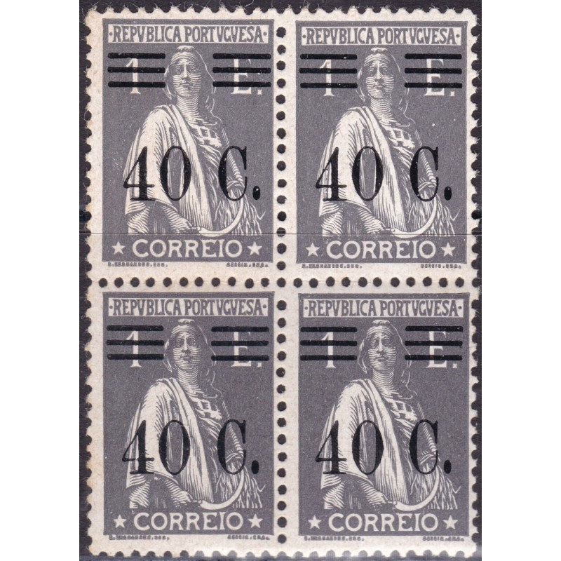 Quadra do selo nº470 com charneira, papel liso e dent. 12x11½ com variedades de cliché. Exemplar em boas condições.