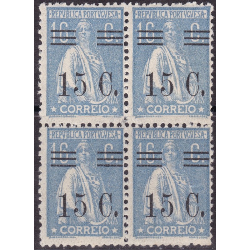 Quadra nº 459 sem charneira, papel liso com sobrecarga descentrada. Exemplar em boas condições.