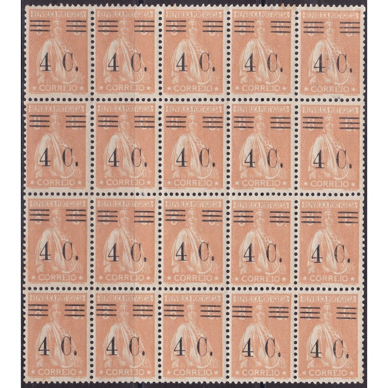 Bloco de 20 selos nº 451 sem charneira, papel liso e dent. 12x11½