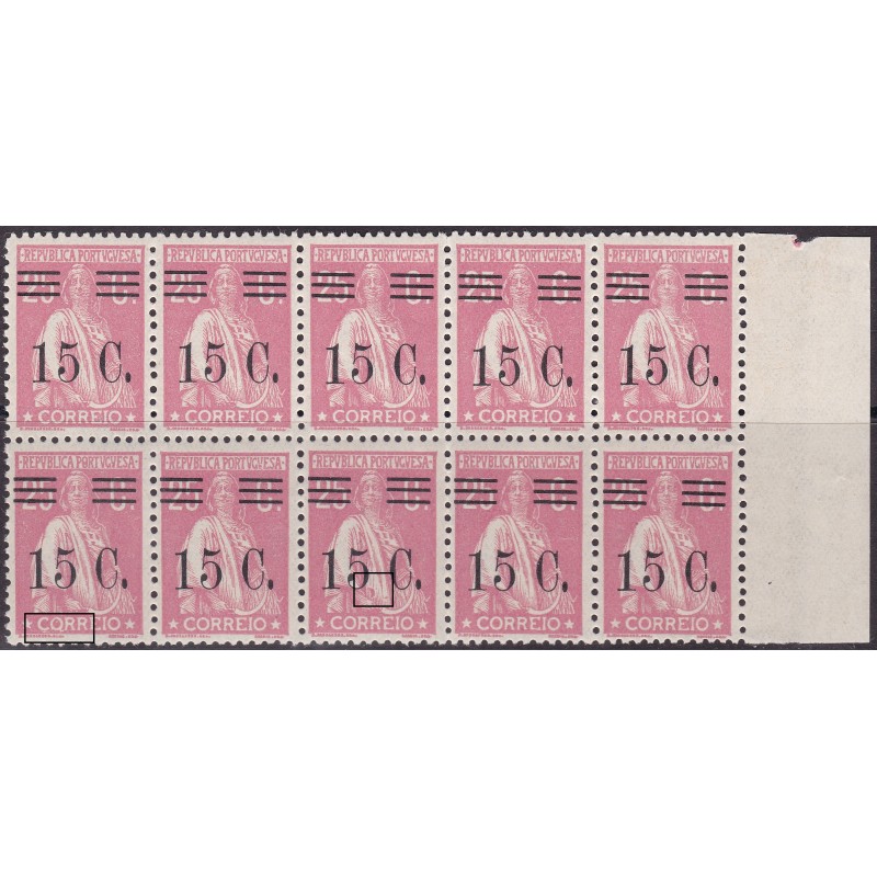 Bloco nº 463 sem charneira, papel pontinhado vertical e com variedades de cliché não catalogada. Exemplar em boas condições.