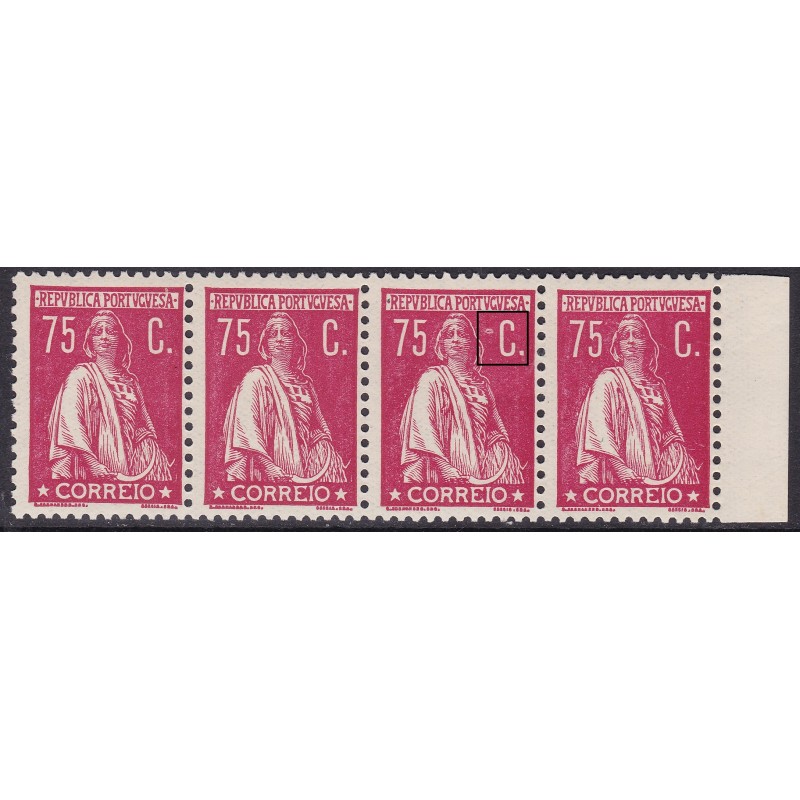 Tira nº 506 sem charneira e goma original, papel pontinhado horizontal. Variedade de cliché não catalogado Exemplar em boas condições.