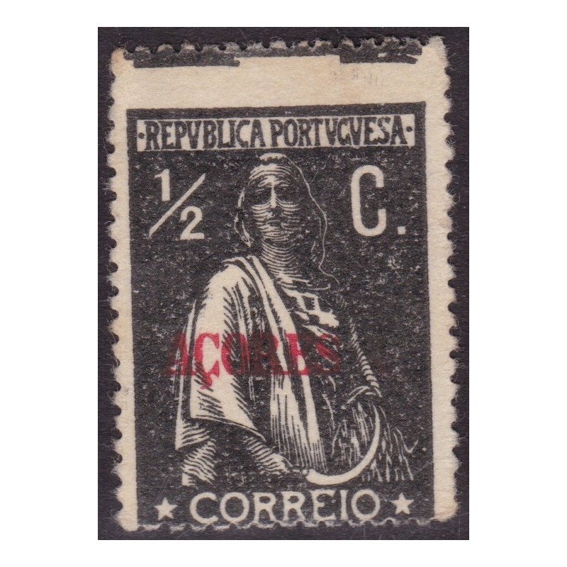 Nº 162 selo com sobrecarga Açores deslocada, com charneira e goma original e denteado 15X14. Exemplar em boas condições.