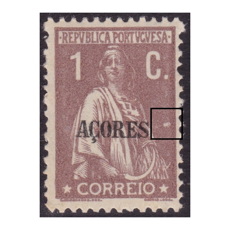 Sobrecarga Açores Dupla - Selo nº 150, variedade de cliche XXI em papel pontinhado vertical e denteado 15X14. Exemplar em boas condições.