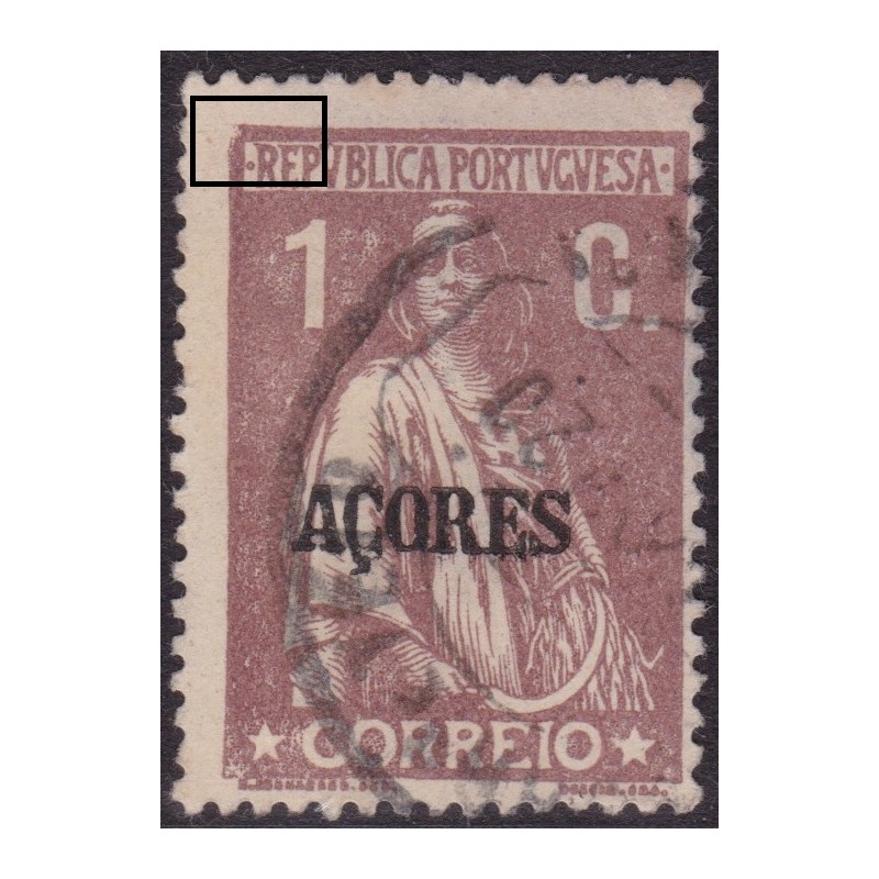 Sobrecarga Açores Dupla - Selo nº 150, variedade de cliche XXI em papel pontinhado vertical e denteado 15X14. Exemplar em boas condições.