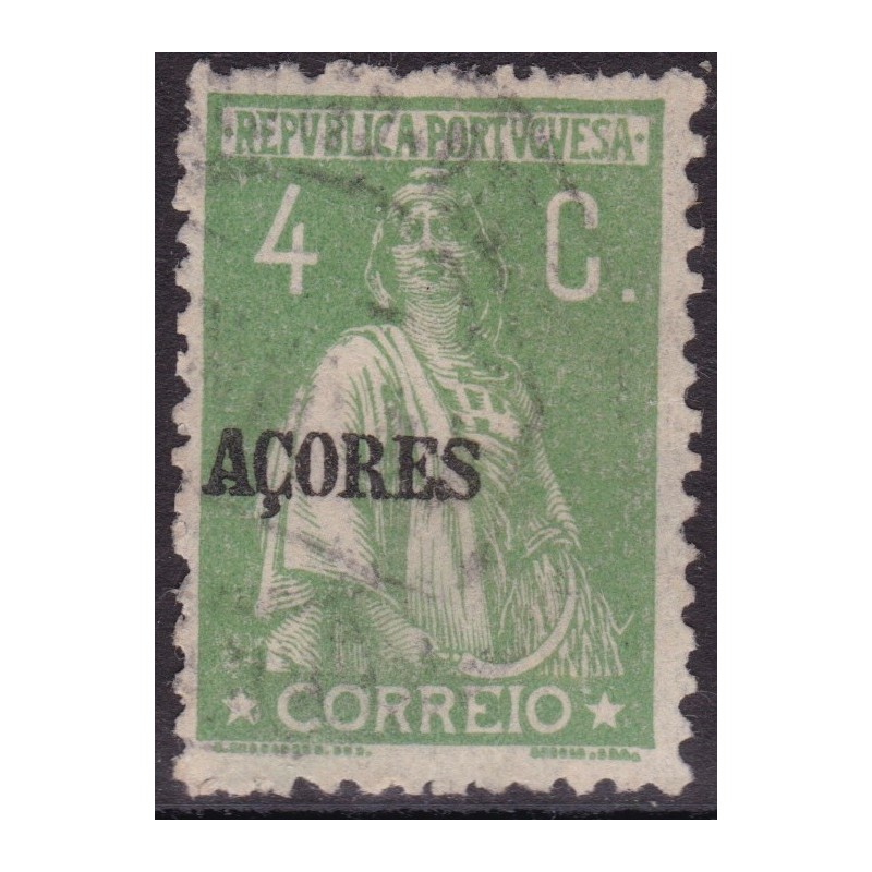 DUPLA Sobrecarga Açores - Selo Nº 150 usado, papel porcelana em denteado 15x14. Exemplar em boas condições.