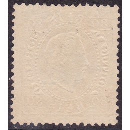 Nº 21 selo 80 reis laranja, Sob B sem goma denteado 13½. Exemplar com denteado irregular.