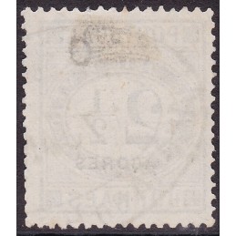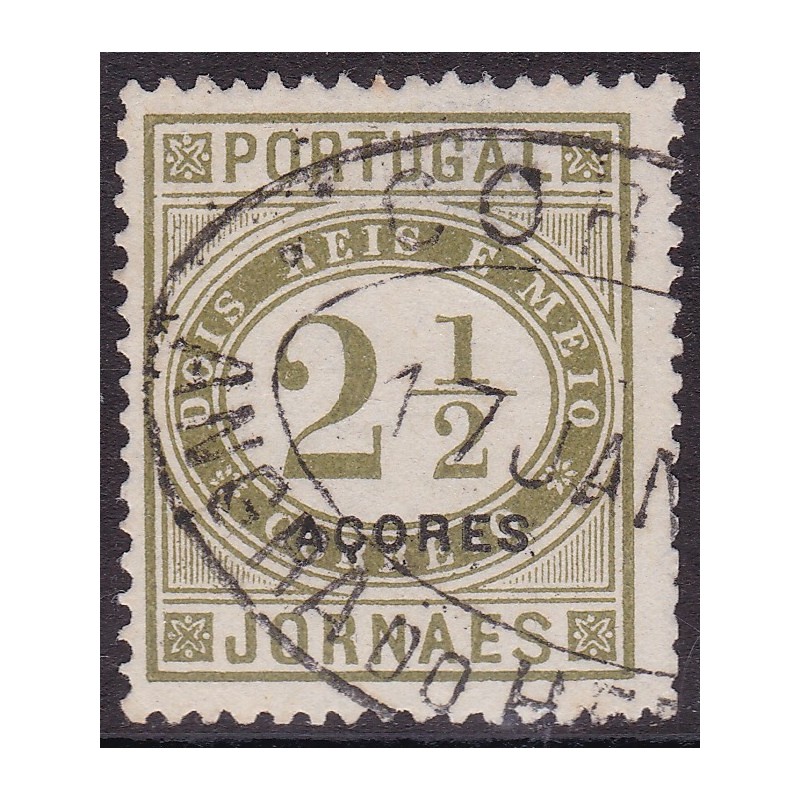 Nº 20 selo 50 reis verde ANGRA Sob B denteado 12½ com denteado irregular. Exemplar em boas condições.